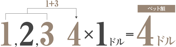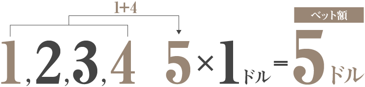 5ドルをベットして勝ったとき「1,2,3,4」の両端を消して「2,3」となります。