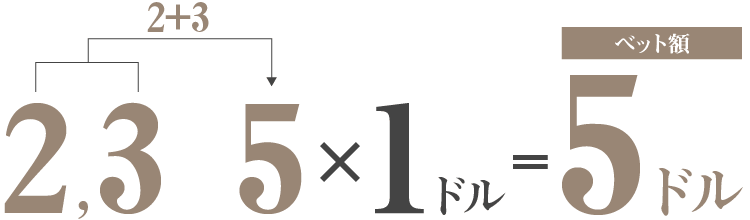 そしてベット額は「両端の数字を足した数×ベット単位」なので、次のベット額は5ドルです。