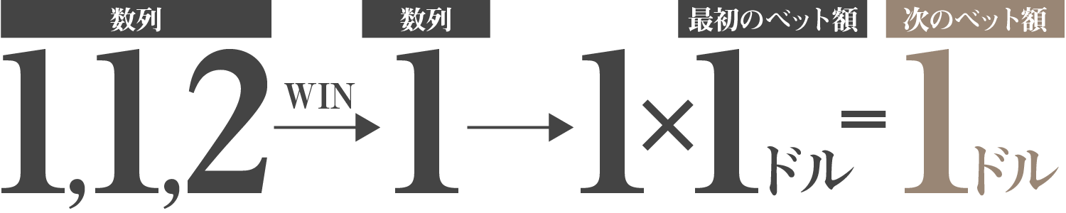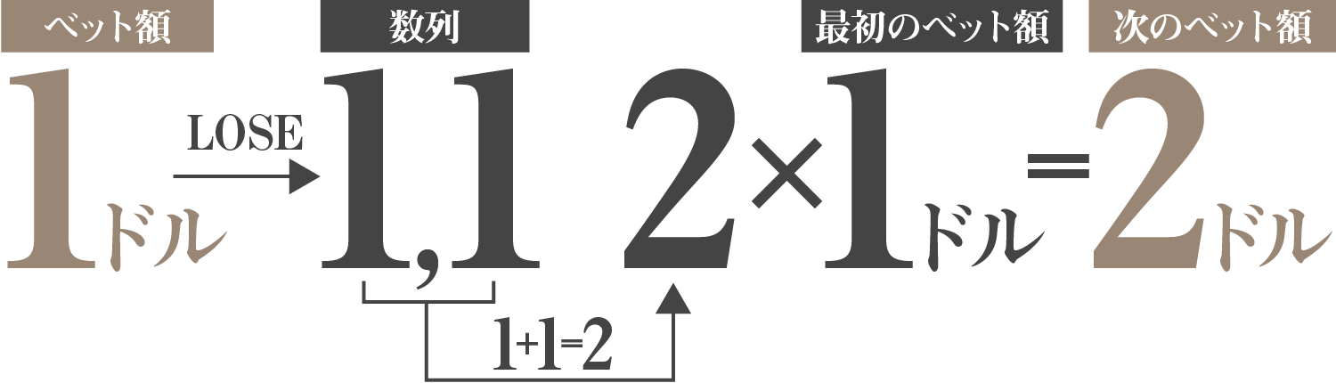 2in1法では負けたときに数列を書き、それを元にベット額を決めることで損失を取り返します。