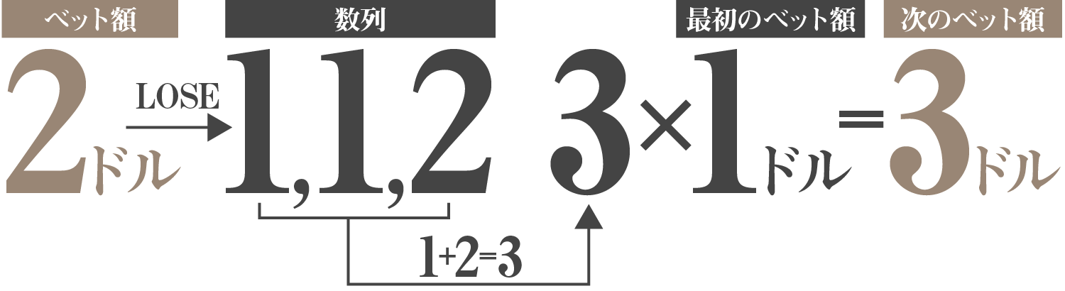 次のベット額は『左と右の数字を足した数×最初のベット額』になります。